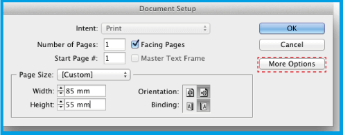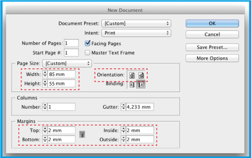 1.2 .In Page Size place the dimension of your document.