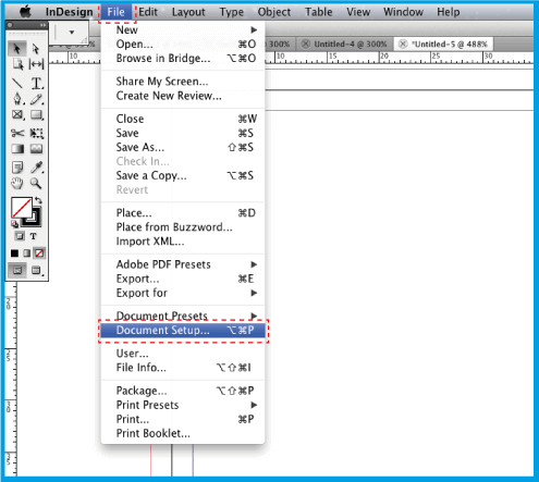 2.1 .In the top menu click the Document Setup button.
