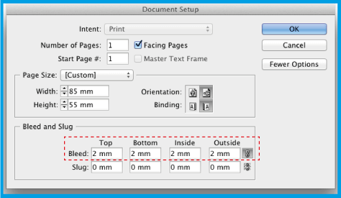2.3 .In Bleed and Slug , type 2mm in all fields, as in the image below.