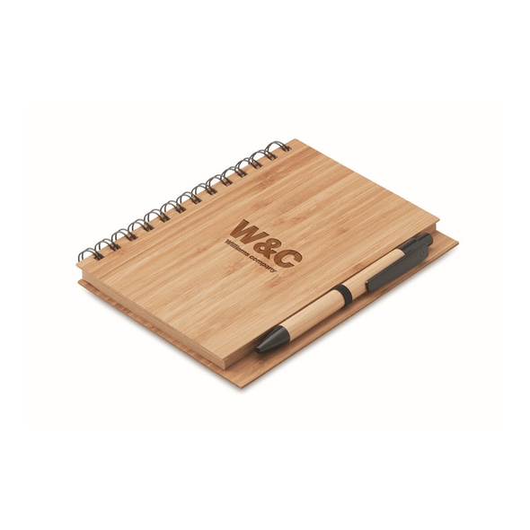 Create your Personalised Bamboo cover notebook with pen. Upload Your Own Design or Personalise a Bamboo cover notebook with pen Template. Make a memorable gift for your customers.