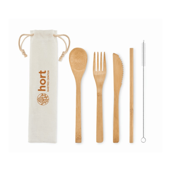 Bamboo cutlery with straw Customised with your design
