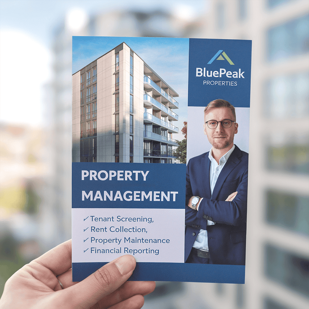 - Professional property management flyers to connect with clients.